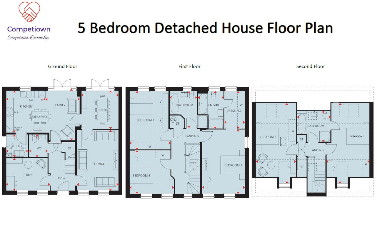 An exceptional opportunity to win a beautifully crafted, new-build five-bedroom detached home, awarded as part of a conditional prize draw operated by Competiown Ltd.